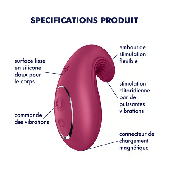 Dipping Delight de Satisfyer associe précision, puissance et confort grâce à sa technologie double moteur et son embout flexible. Idéal pour une stimulation externe ciblée, il combine vibrations profondes et silicone médical ultra doux pour des sensations intenses tout en restant agréable sur la peau.