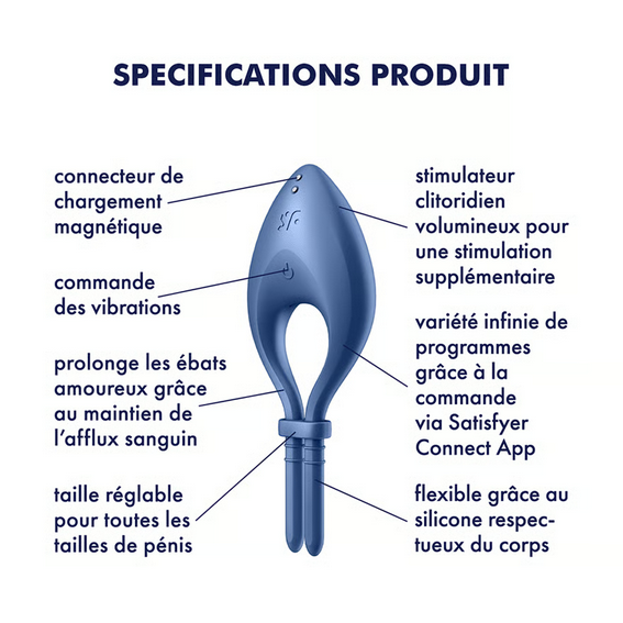 Bullseye Connect App de Satisfyer est un anneau pénien vibrant réglable, conçu pour prolonger l’endurance et intensifier les sensations du couple. Son moteur puissant stimule simultanément le pénis et le clitoris, tandis que le contrôle via application permet une personnalisation totale des vibrations, même à distance.
