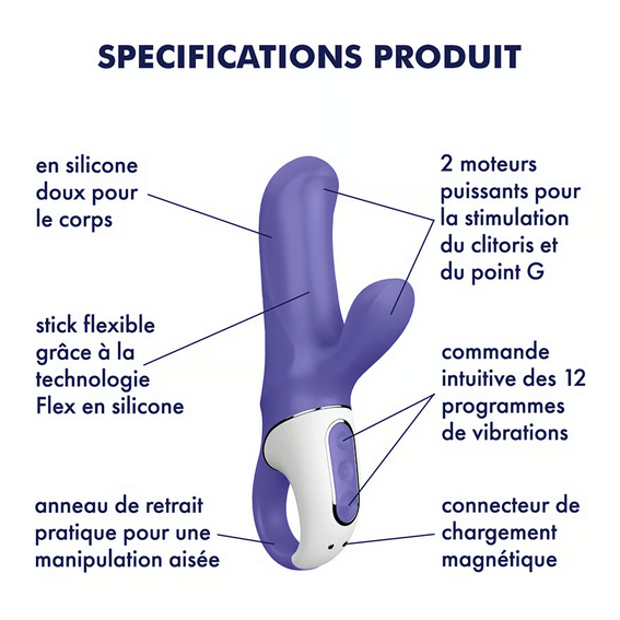 Le Satisfyer Magic Bunny combine une stimulation du point G et du clitoris grâce à ses deux moteurs puissants. Compact, souple et entièrement en silicone premium, il vous accompagne pour des orgasmes profonds, intenses et parfaitement ciblés.